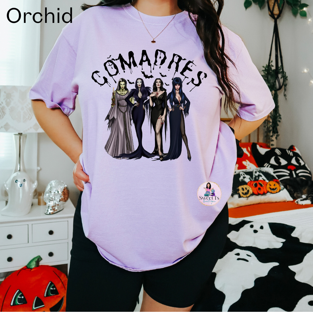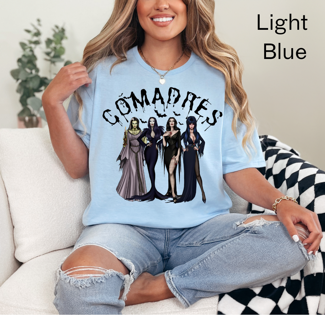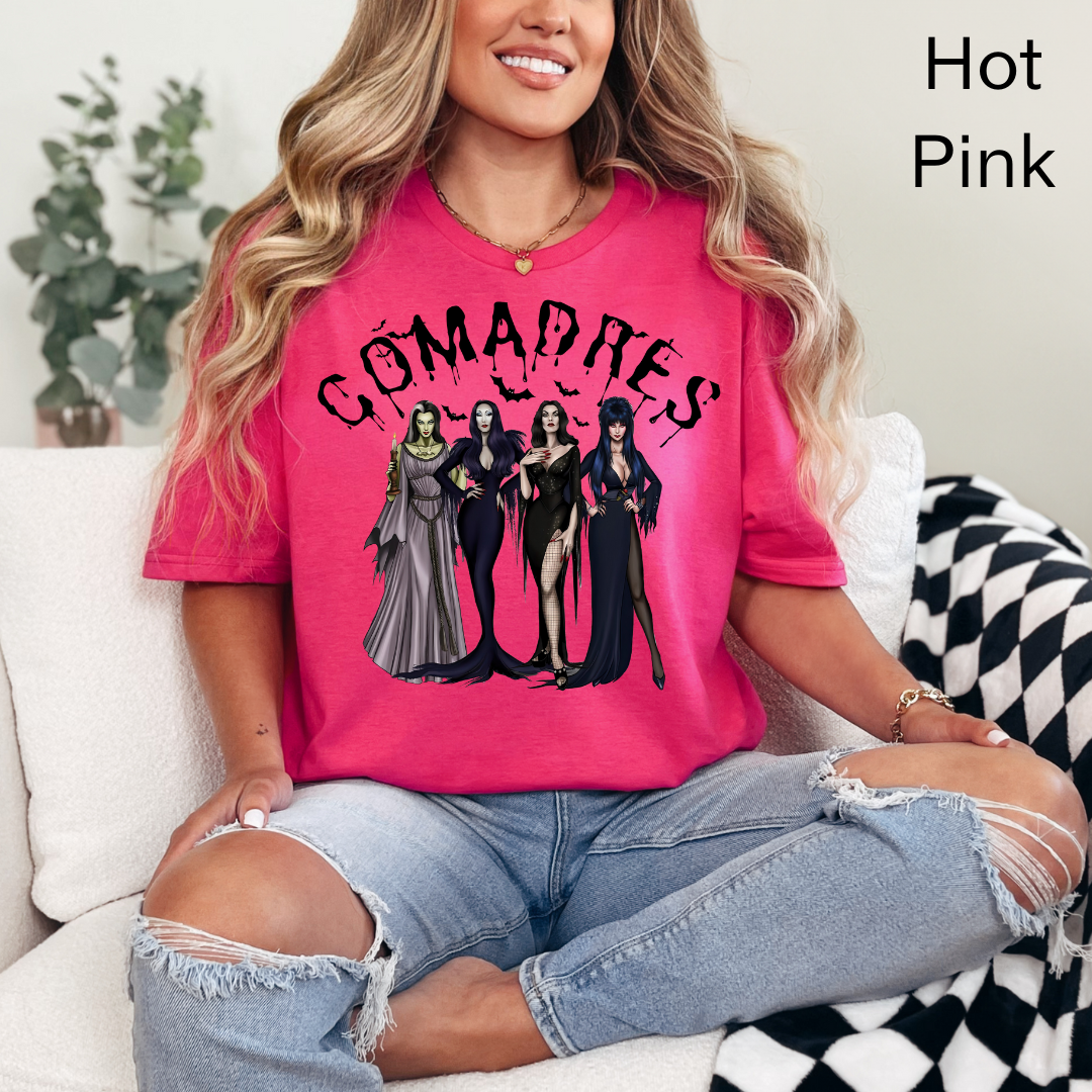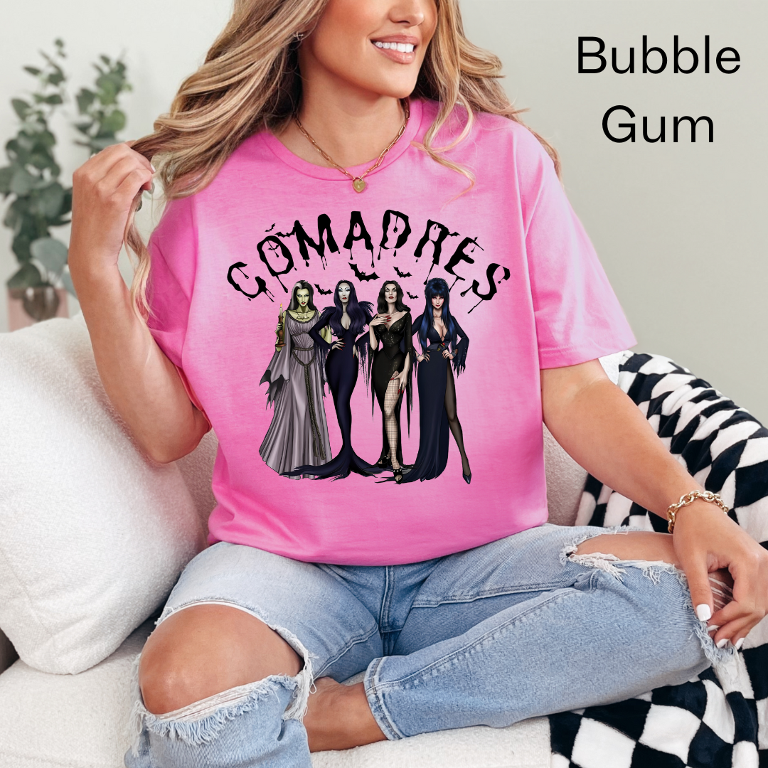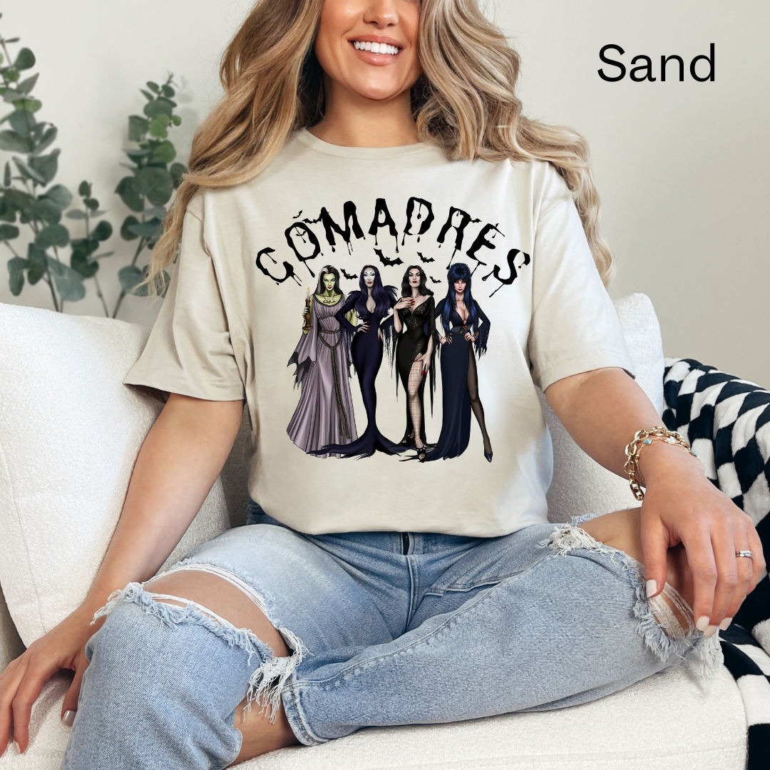 Get into the Halloween spirit with our Comadres tee! This fun and trendy shirt is as comfy as it is stylish, perfect for celebrating the season with friends. Wear it to stand out and be the talk of your neighborhood—grab yours today and let the festivities begin!