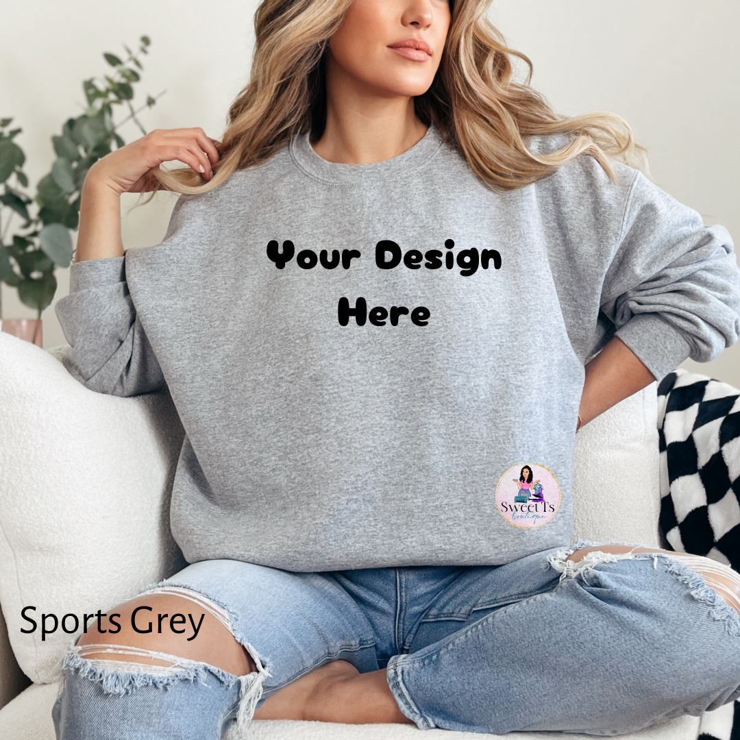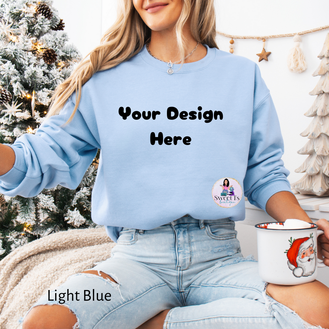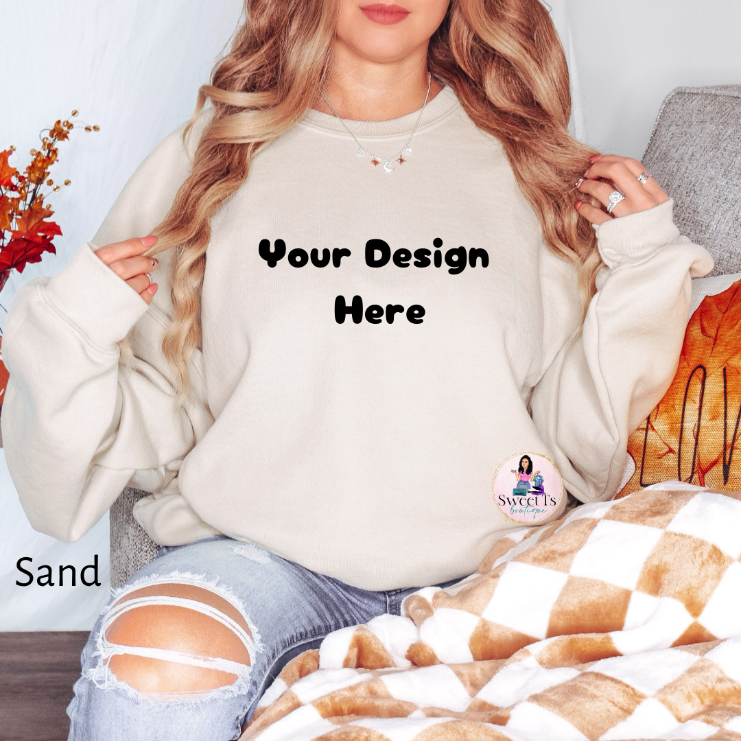 Effortlessly personalize your style with Custom Gildan 50/50 Crewneck! Watch our pinned video for inspiration and choose your unique design. Leave a description or design number in the "Leave a note about your order box" before checkout and let us take care of the rest! (No artistic skills required!