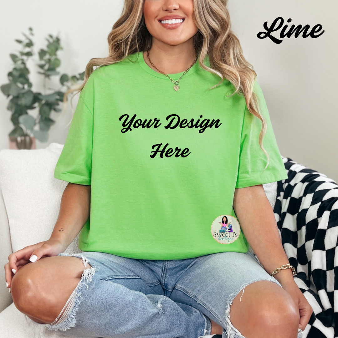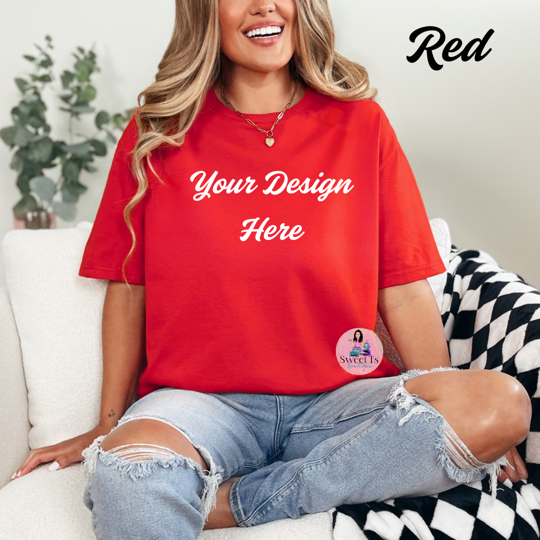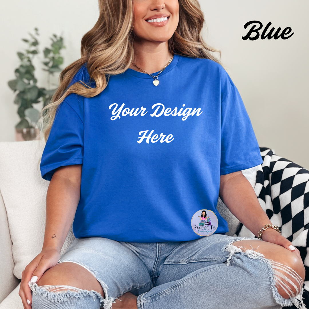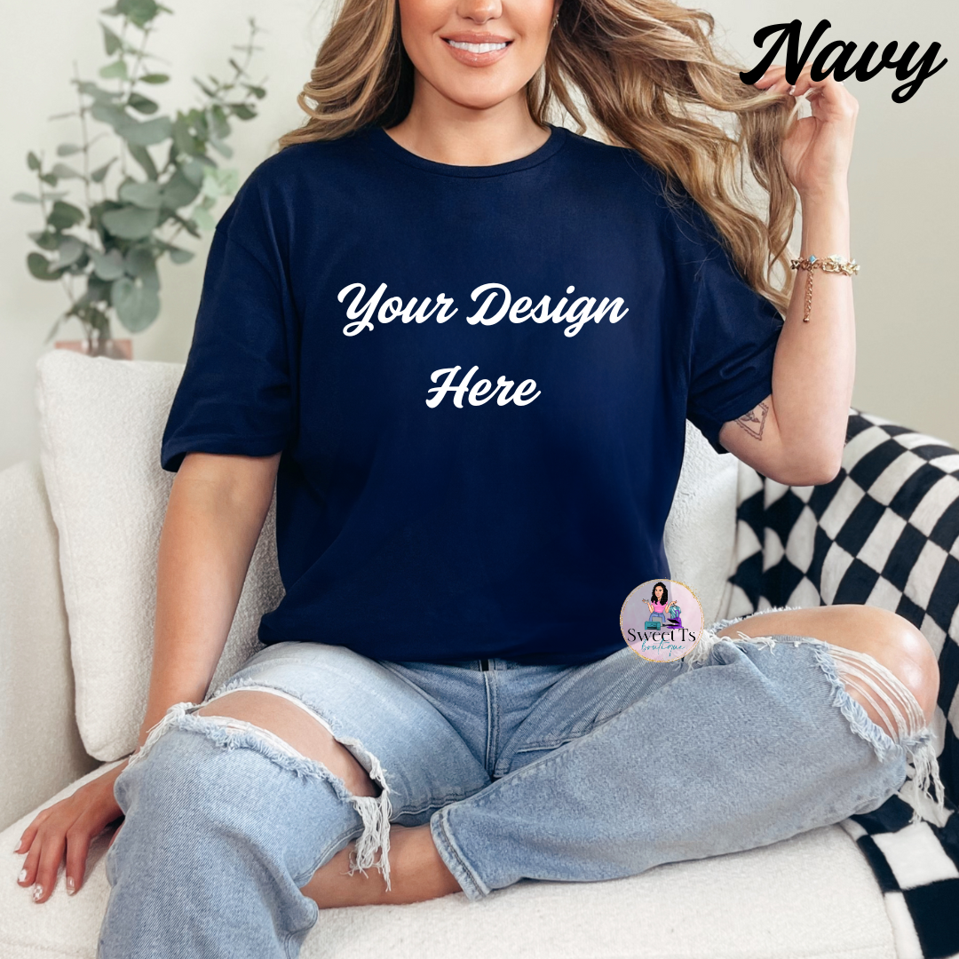 Rock your own style with our custom Gildan 50/50 (cotton/polyester) t-shirt. Comfortable and true to size, these are the perfect canvas for your favorite design. Make it your own and stand out from the crowd!