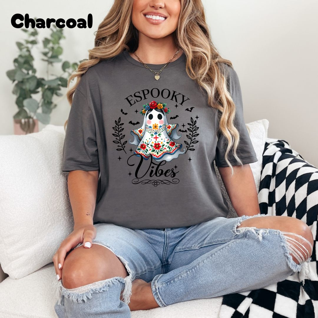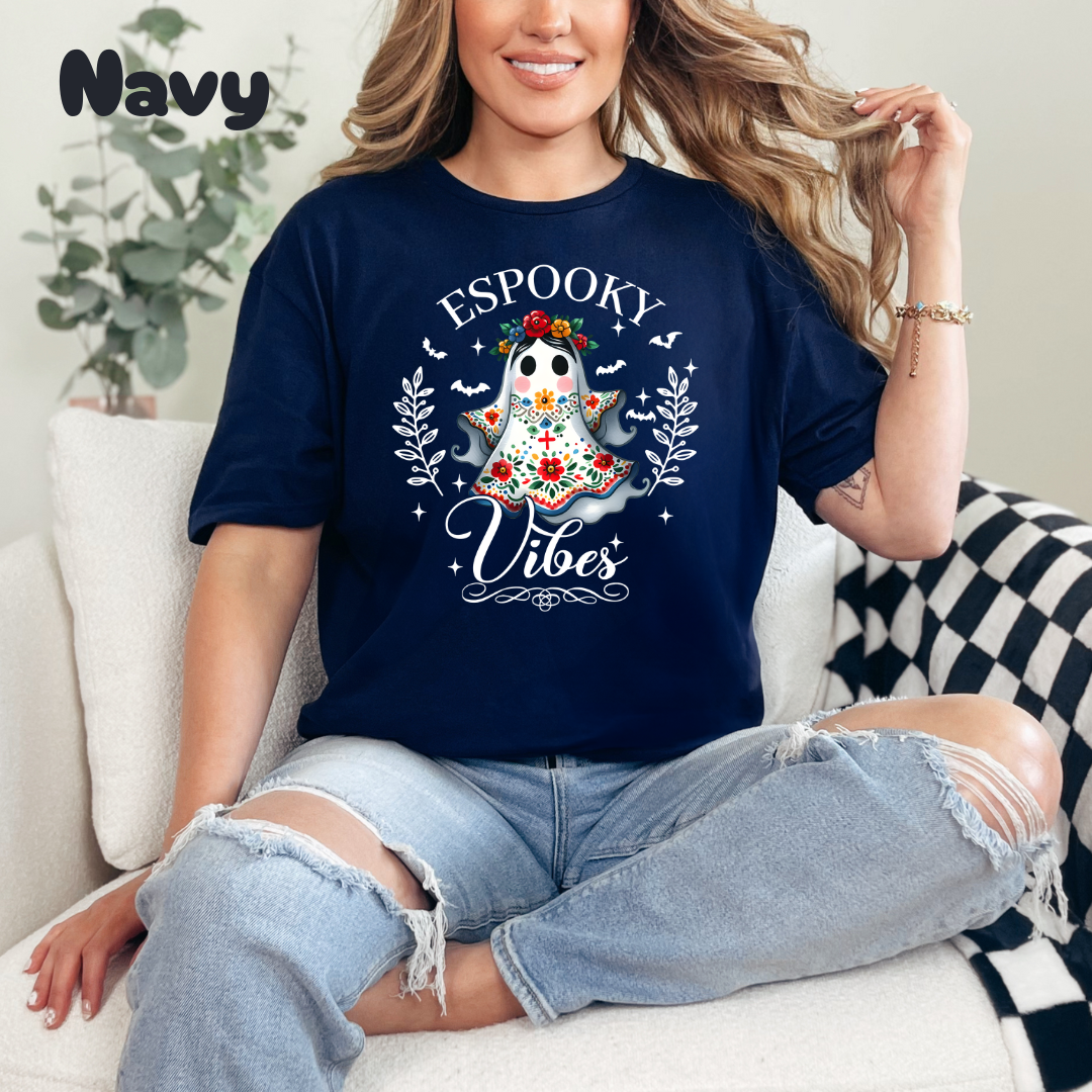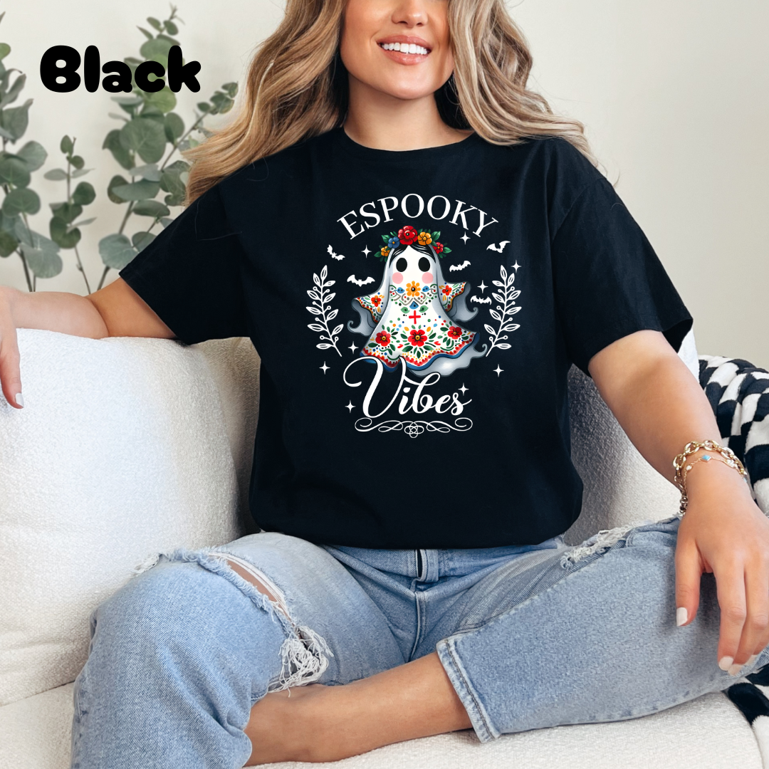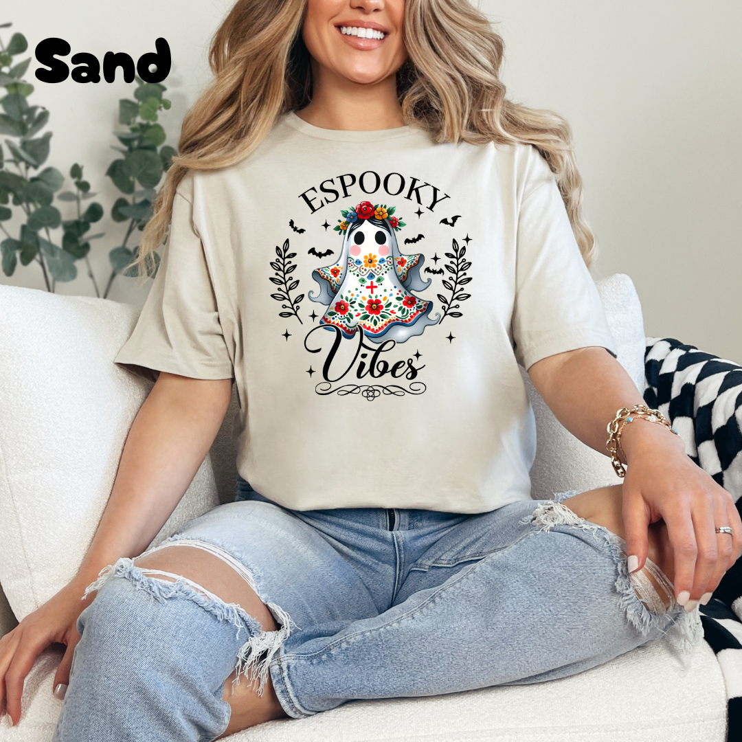 Embrace cozy charm with our Espooky Vibes tee! Crafted from 100% ring-spun cotton, it offers softness and comfort perfect for your daily adventures—whether you're sipping coffee and biting into pan dulce or juggling school runs. Stay effortlessly stylish and playful every day with this must-have tee. Grab yours and let the good vibes roll!