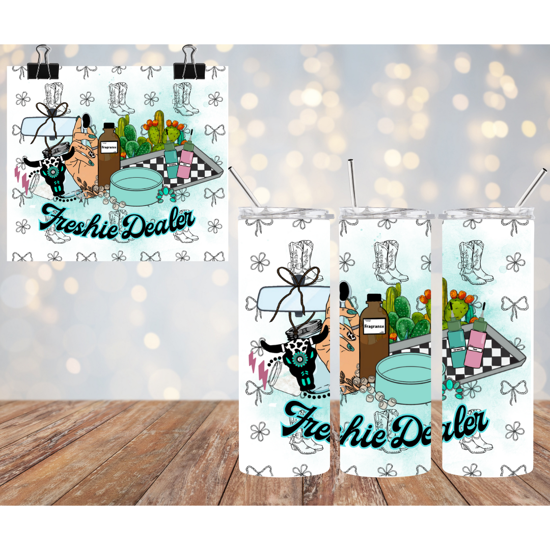 Stay cool or cozy with the Freshie Dealer 20oz Tumbler! This double-insulated tumbler keeps your hot drinks steaming and your cold drinks refreshingly chilled for hours. Perfect for any season, it’s your go-to companion for stylish sips all day long. Grab yours and sip in style!